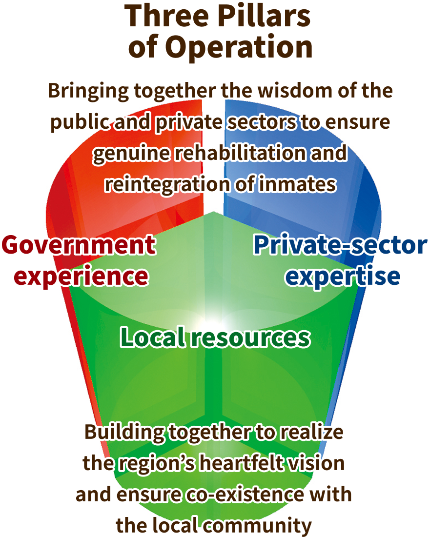 We believe that “building together” with the local community is the first step toward realizing a prison that is understood and supported by the public. The community interaction space serves as the hub of local community activities, functioning as a self-contained “town” that houses staff dormitories, a visitor center, a certified childcare facility, and a martial arts dojo, among other facilities.